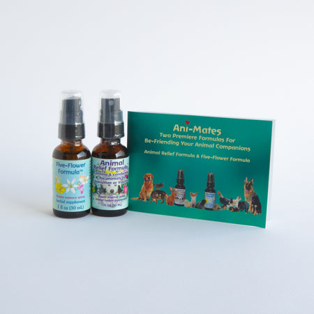 Two flower essence formulas to support animals. Includes the soothing Five-Flower Formula to help bring calm and stability in times of stress, and Animal Relief Formula to comfort animals that are in transition or trauma. A wonderful gift for your animal loved ones, or a friend who loves theirs.